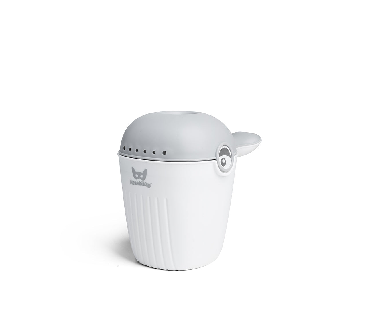 The rinse jug with controlled water flow and playful design reduces the risk of water in the eyes.